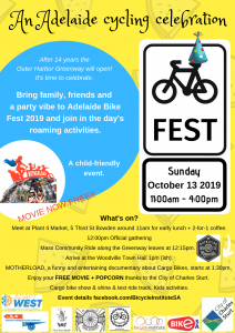 The event is timed as a lead up to the Australian Walking and Cycling Conference in Port Adelaide on October 24 – 25 2019. http://www.walkingandcycling.com.au/