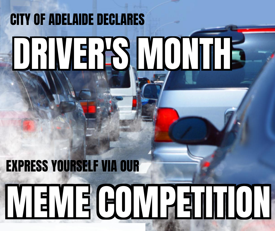 Get your witticisms on and your creative juices flowing and show us your best memes about the City of Adelaide’s elected member decision to run a “Drivers Month” encouraging people to drive to the city.