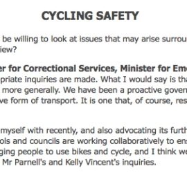 The state parliament’s Legislative Review Committee is conducting an inquiry into traffic and parking. The terms of reference are: The regulation by local government of parking and traffic movement in […]